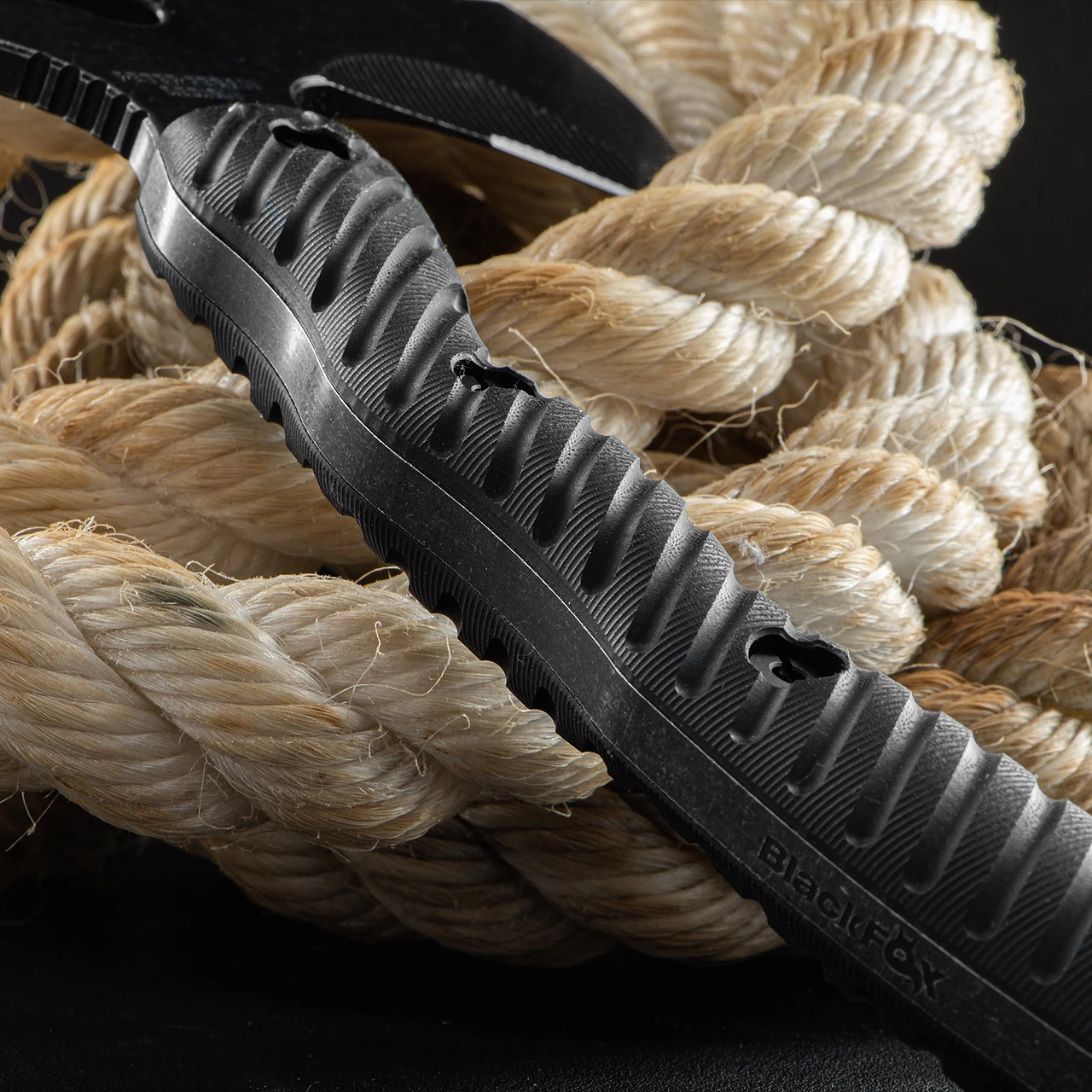 The Black Fox Evolution Tomahawk is a Peter Fegan design and a tough powerful tool. It is one piece of 440C stainless steel with a blackwashed finish and has a great feel and perfect balance in the hand. The handle scales are sculpted G10 which not only provide a secure grip but are pretty much indestructible too.