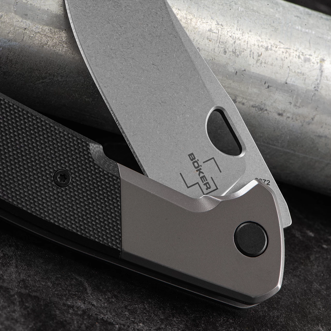 The multi-piece handle consists of a titanium-coated stainless–steel body and finely textured handle scales made of black G10, which provide optimum grip even under adverse conditions. Versatile carrying options are offered thanks to the 3D-milled pocket clip (tip-up/r) and the lanyard hole for attaching lanyards. The Boker Plus Elso Folder is supplied with a high-quality nylon case.