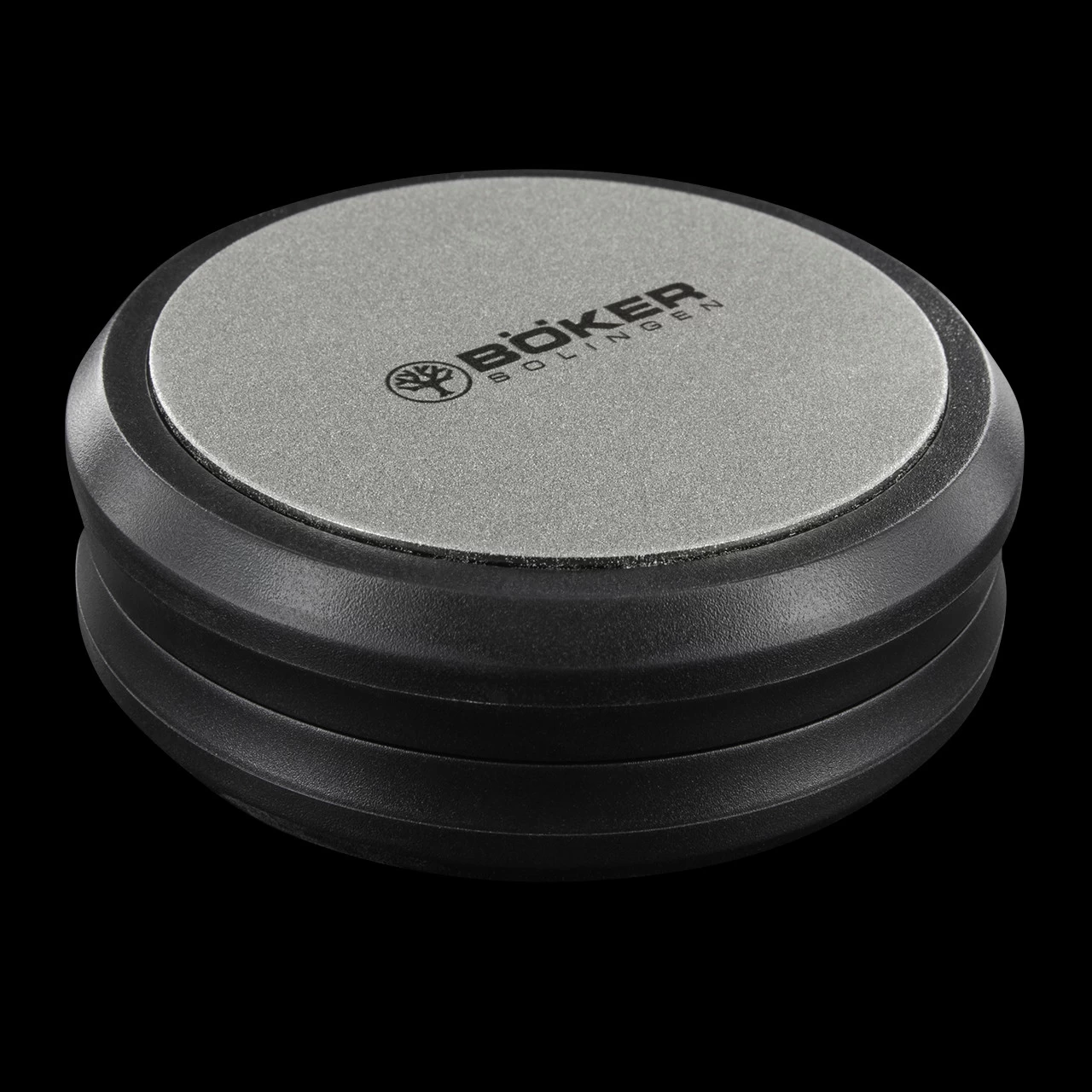 The Boker Puck Diamond/Ceramic is a compact and easy-to-use sharpening device that is used primarily for larger knives and garden tools such as axes, machetes, spades and hoes. The grinding surface is simply moved in a circle over the cutting edge.
