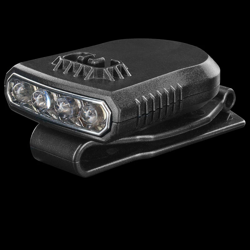Simple and effective white/green LED light that clips onto the bill of your hat and can be angled up and down.