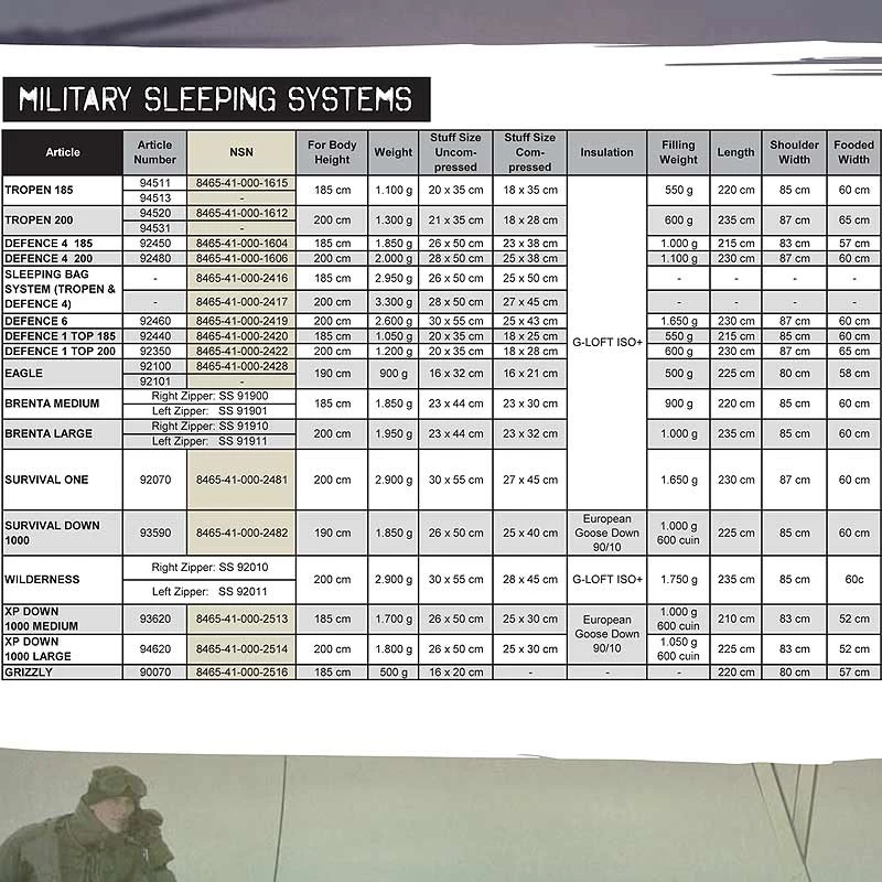 ‘The DEFENCE 4 is the most popular and best-selling all-round sleeping bag with excellent weight ratio, stuff size and performance. It is a well-established, three-season sleeping bag that has proven to be 100% reliable in cold nights both in the wilderness and in snow caves. A protection flap on the outer side of the zipper keeps out wind and wet.The outer shell is a super-light,highly resistant, microfibre nylon with fine microporous coating which makes it waterproof. There is a generous draft tube on the inside of the zipper to prevent heat loss at the zipper.