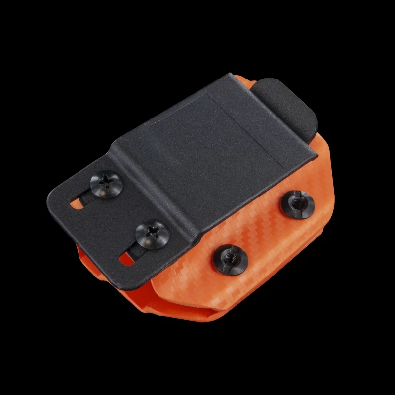 Kydex is one of the toughest thermoplastic acrylic-polyvinyl chloride materials known to man yet has enough give to make this sheath have an adjustable retention system for looser or tighter carry. It also has a heavy duty adjustable belt clip with up to 22 degrees of adjustability.