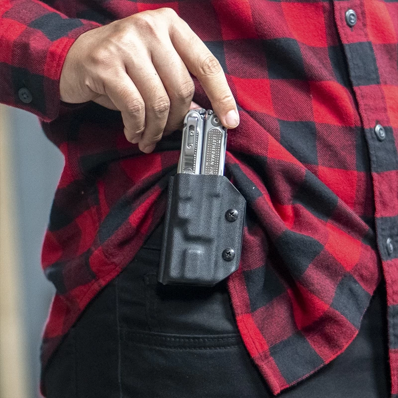 So you’ve got your new Leatherman Free P4 but you need something to, not only hold it securely to your belt, but keep it protected and stored safely too. The answer is the Clip and Carry Kydex sheath for the Leatherman Free P4.