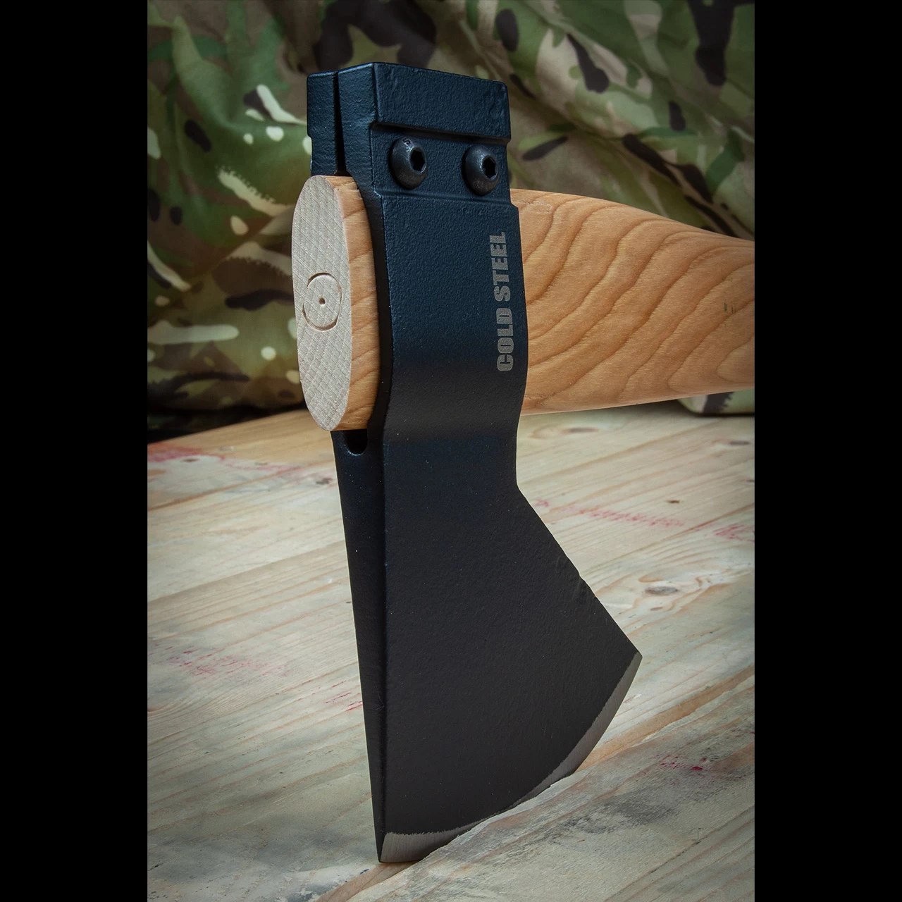The Cold Steel Hudson Bay Camp Axe is faithful to historical examples stretching back over 100 years. Sized to be convenient to carry on every outdoor adventure, it’s an essential tool you won’t want to go into the woods without. Best of all, it features the ground breaking clamp-like locking mechanism which is so ruggedly hard to “pull off” that it doubles the industry standard!