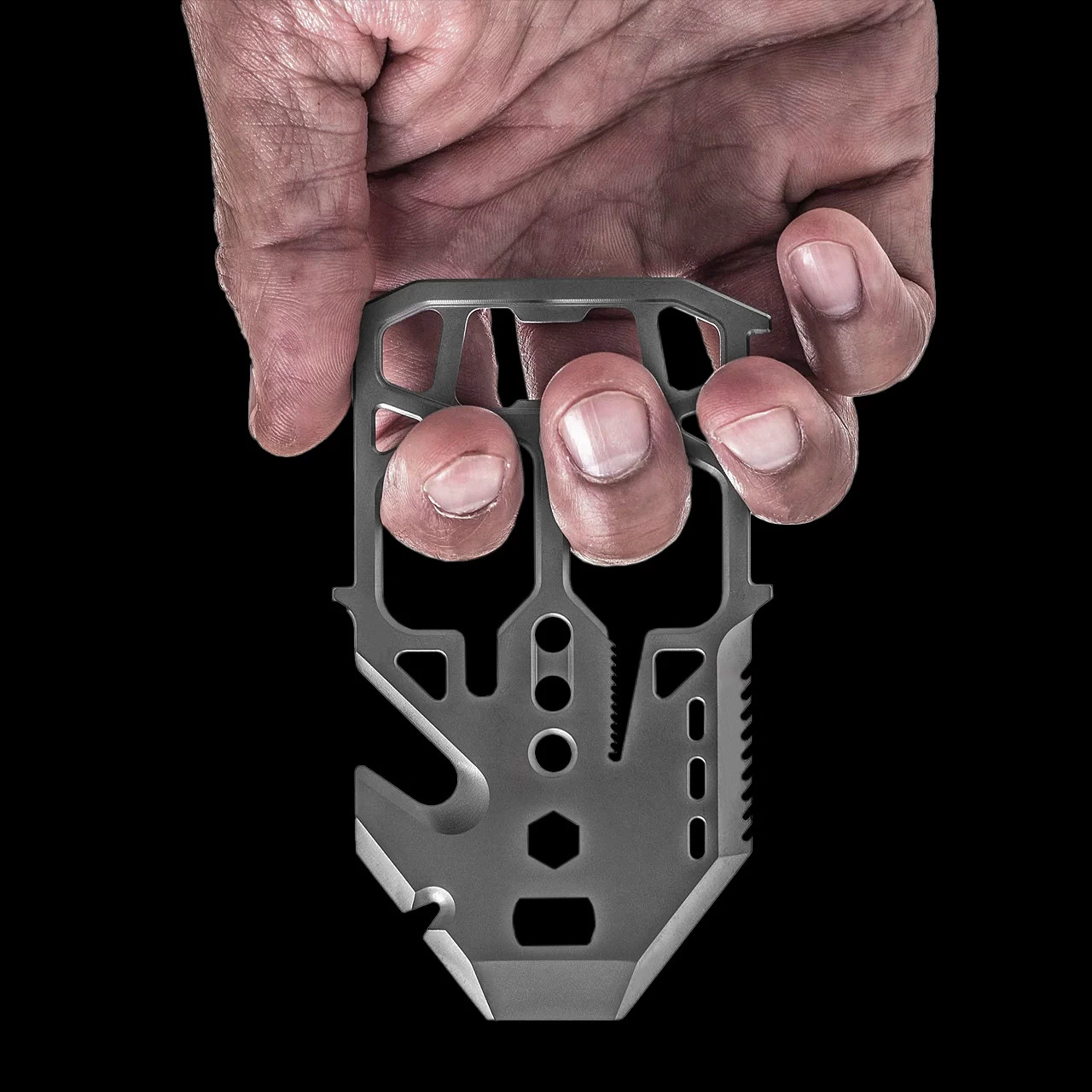 The M1 Spec-Ops Bifold Pocket variant comes with its pairing high carbon, heat treated MT04 Multi-Tool which has over 10 functions which are specifically designed to respond to emergency situations. The functions of the multi-tool include: a seat belt cutter, serrated/sharpened edges, chisel, 2 paracord tensioners, an O2 oxygen wrench, nail pryer, standard 1/4” inch hex wrench, and of course, a bottle opener. The MT04 Multi-Tool slides into the metal cavity where the cards sit and is nested securely onto the safety locks on the chassis.