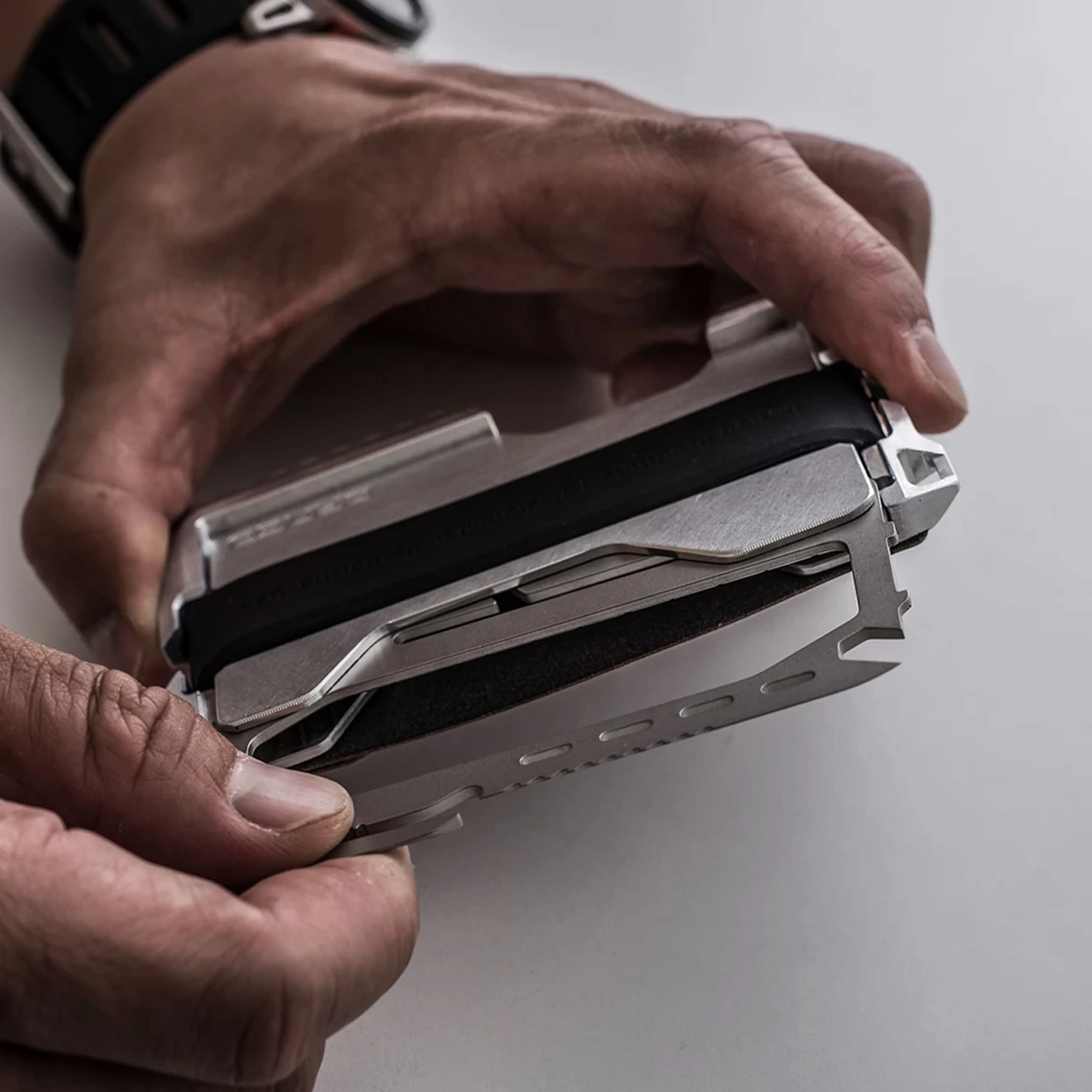 When engaged, the multi-tool can nest securely into the safety locks built into the wallet chassis- allowing for easy sawing, cutting and protection. Common tools are built in: hexes, paracord cutter, nail pryer, a serrated/sharpened edge and even a phone stand. Dango thought of everything and reckon you’ll be pleased with all of the functions built into such a small package.
