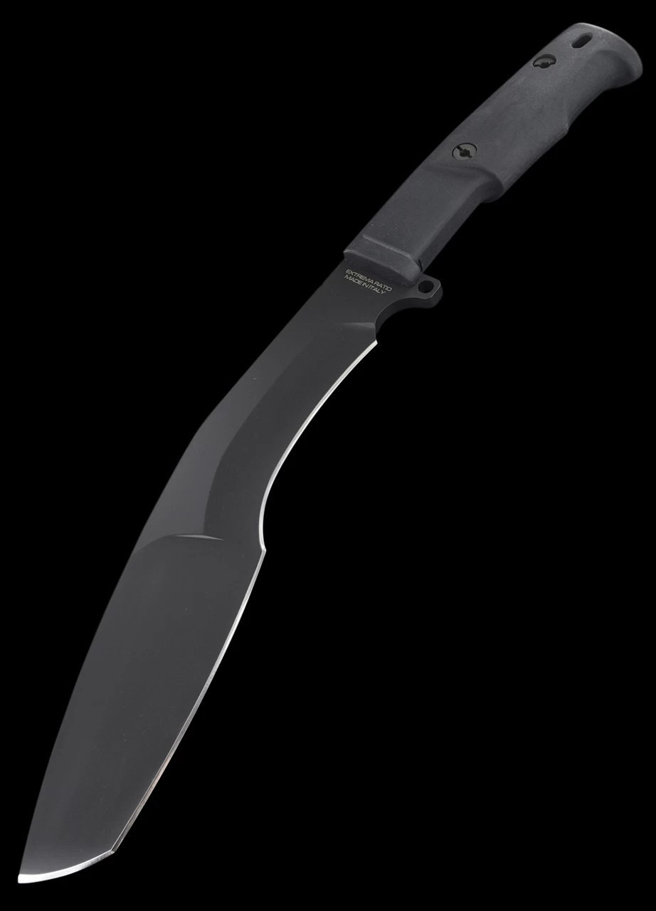 Made famous by the Gurkha regiments serving with the British Army, the kukri is a Nepalese all-purpose blade with origins in ancient Greek sickle-shaped swords. Ultimately, this is a machete with a top-heavy, forward-positioned cutting edge, which enables it to function as an axe while retaining the versatility of a long blade.
