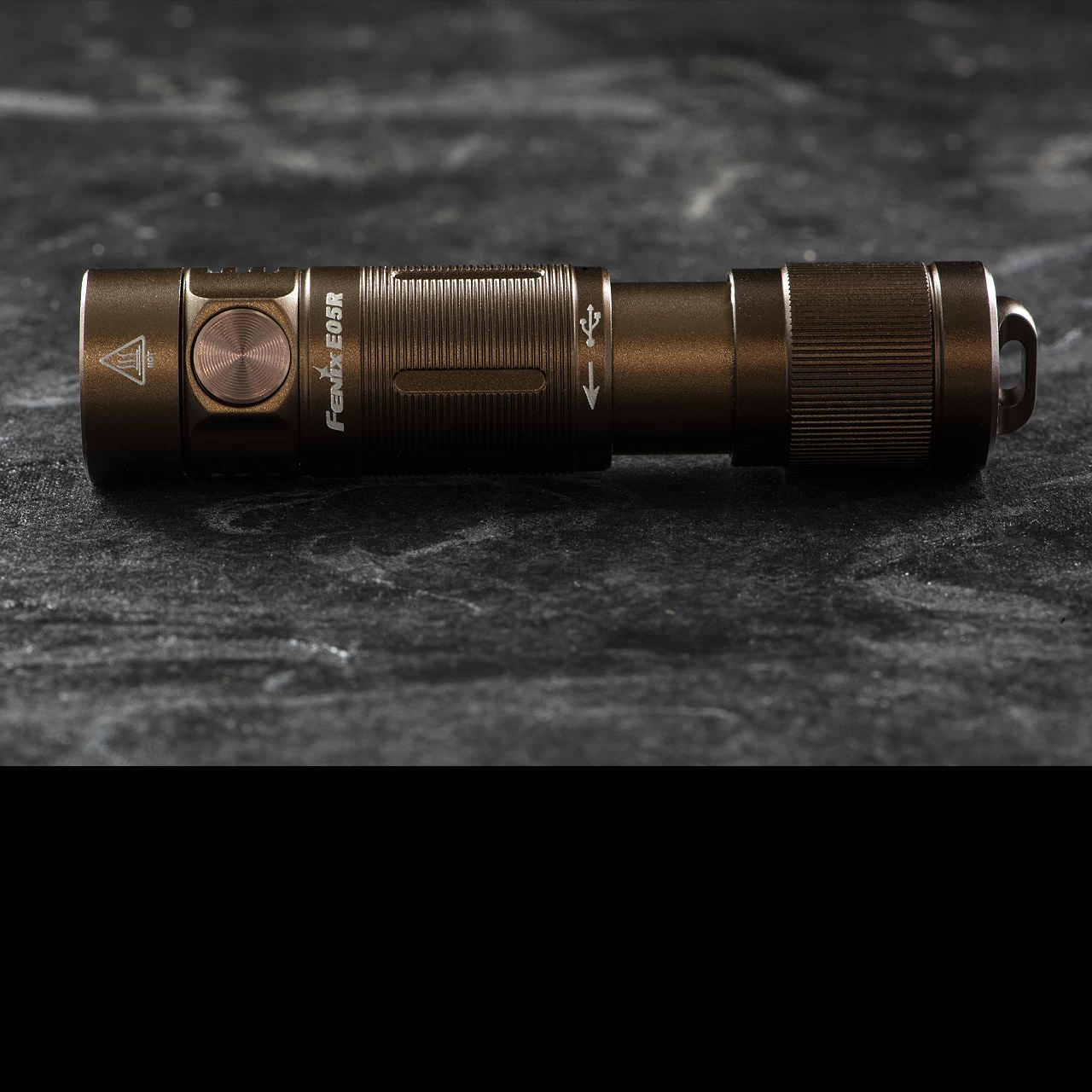 Fenix E05R is a small, lightweight LED keychain torch offering easy one-handed operation and charging via the built-in Micro USB port. Weighing just 24g and with a length of 68mm, E05R is your perfect light weight companion for everyday carry.