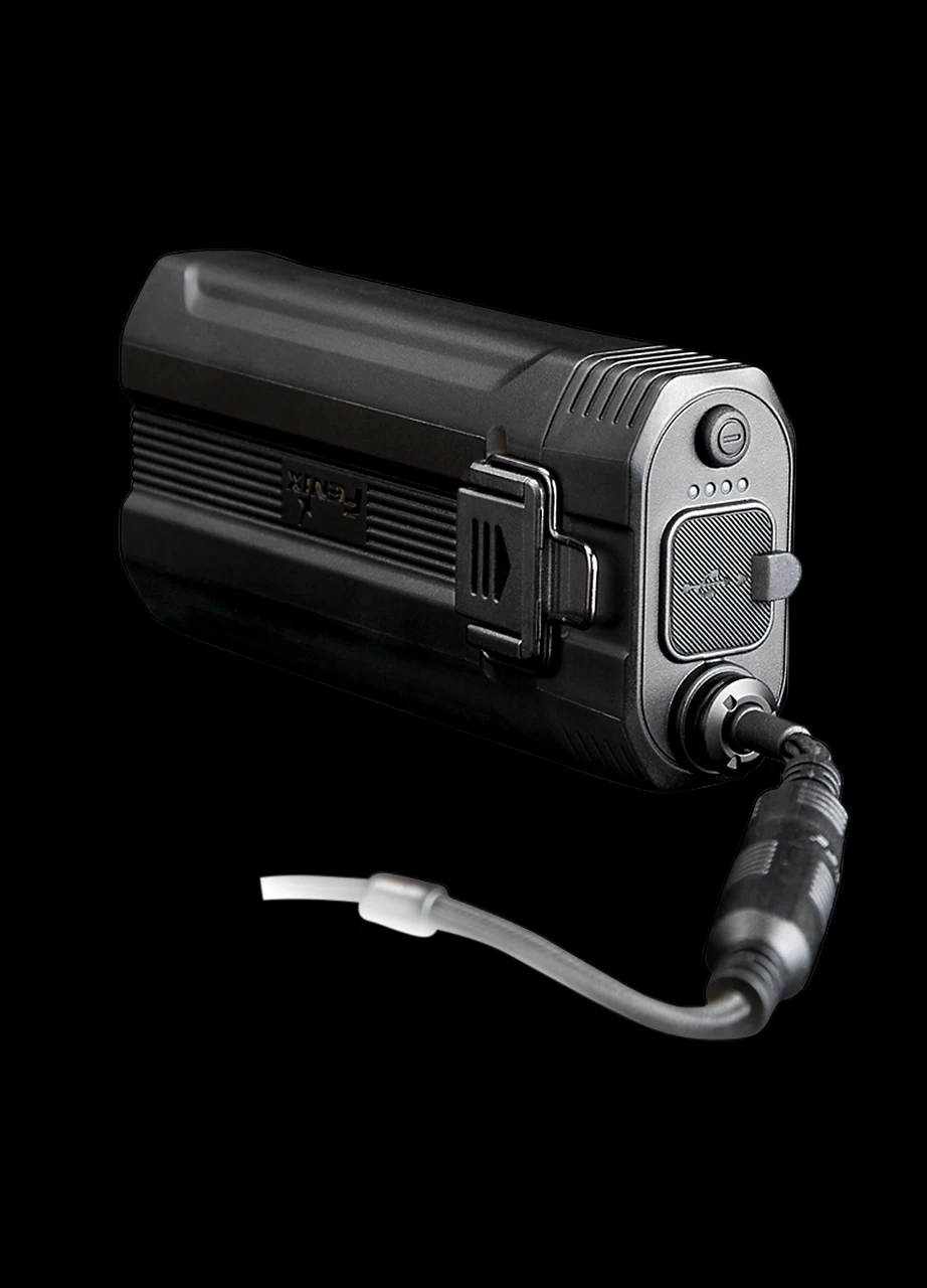 Includes: 2 x Fenix ARB-L21-5000 21700 li-ion batteries, 4 x helmet attachment hooks, 3 x cable clips, USB type-C charging cable, stainless belt clip, extension cable, spare o-ring.