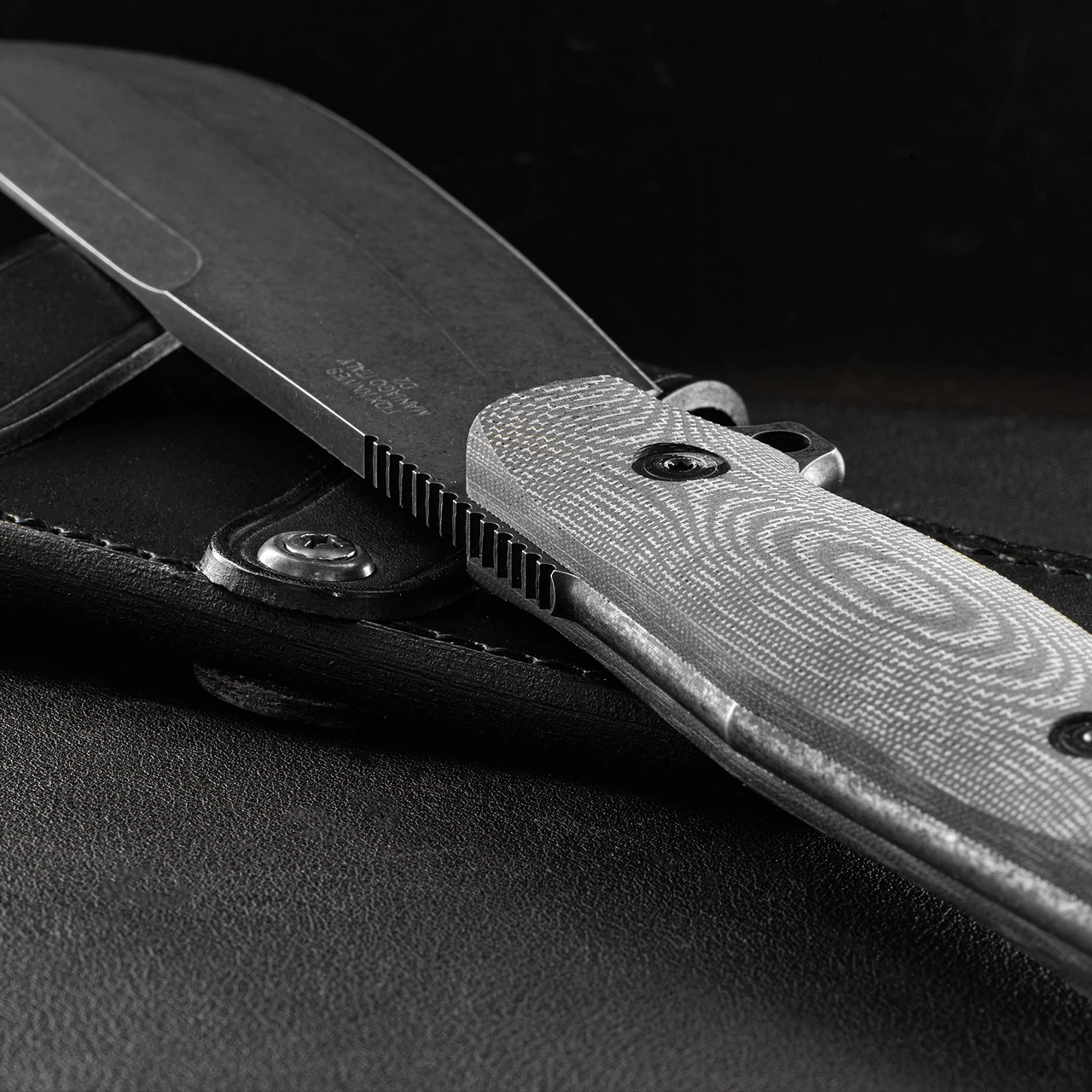 The handle is made of durable Micarta. It is ergonomic and easy to handle and is equipped with holes for Paracord to achieve a higher level of safety during demanding work.