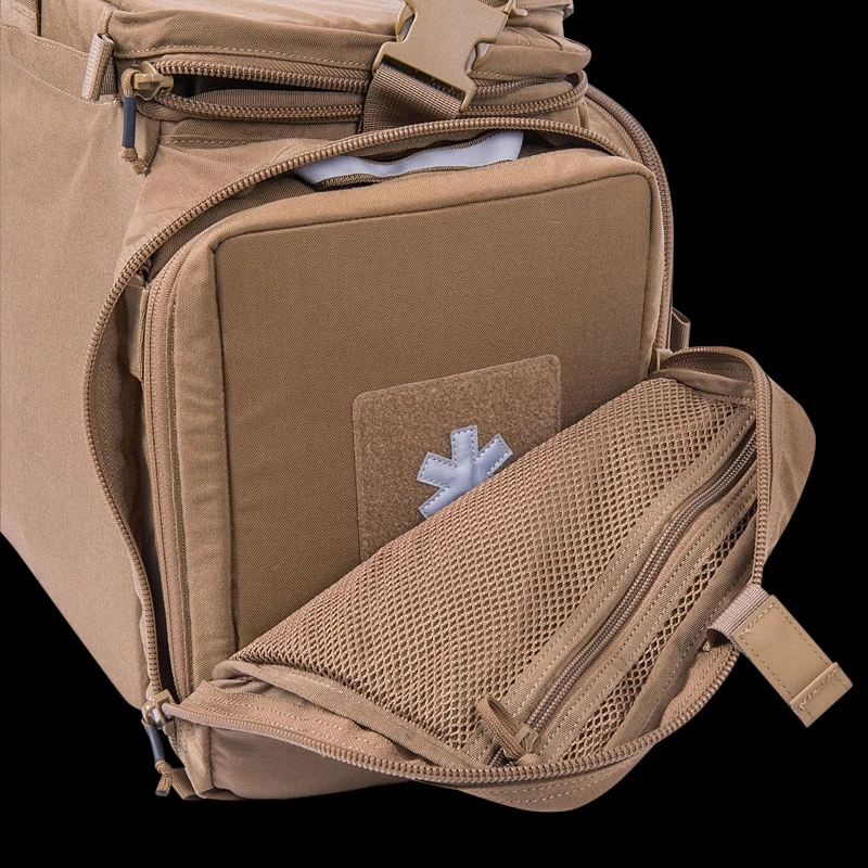 The bag was designed to easily organise a lot of content anmd to be easily found. There are numerous small Velcro panels throughout the bag to identify the contents with a Tag Patch. The inside is lined with large Velcro panels to allow full customisation of the contents. The bag is fully compatible with the Versatile Insert System, allowing you to attach holsters, pouches, medical inserts and so on. The whole bag is stiffened and made of extremely rugged Cordura 500D and 1000D meaning it is tough and extermely resillient to harsh environments. A wide Universal Carrying Strap and rugged carry handles allow you to comfortably carry even a very heavily loaded bag.