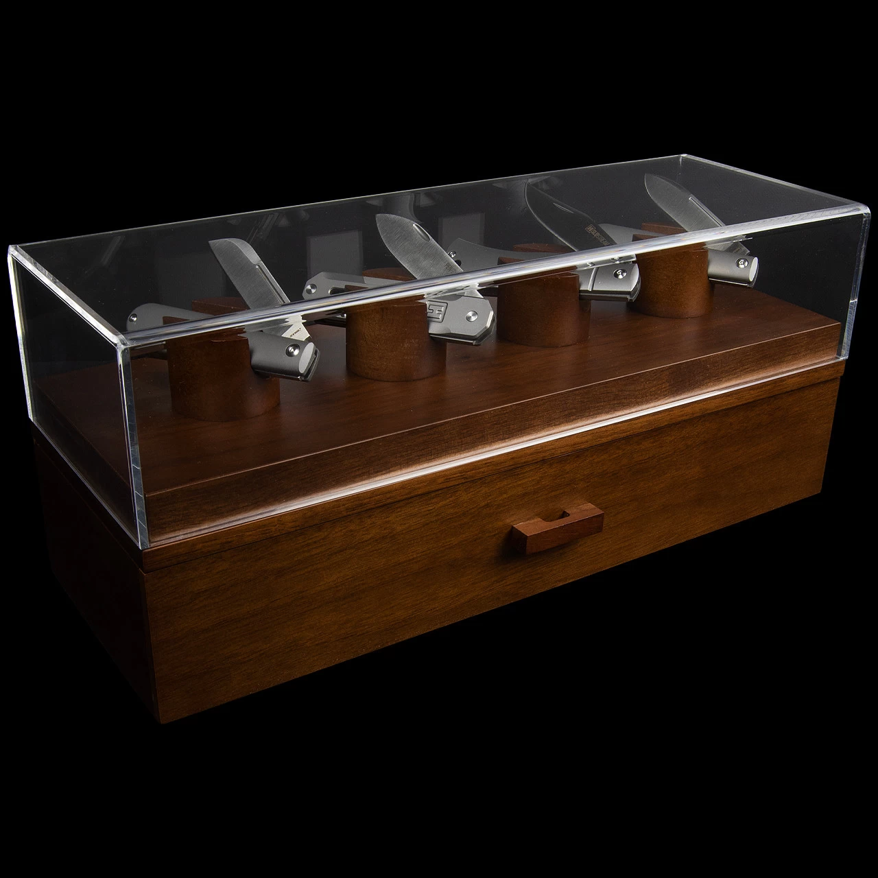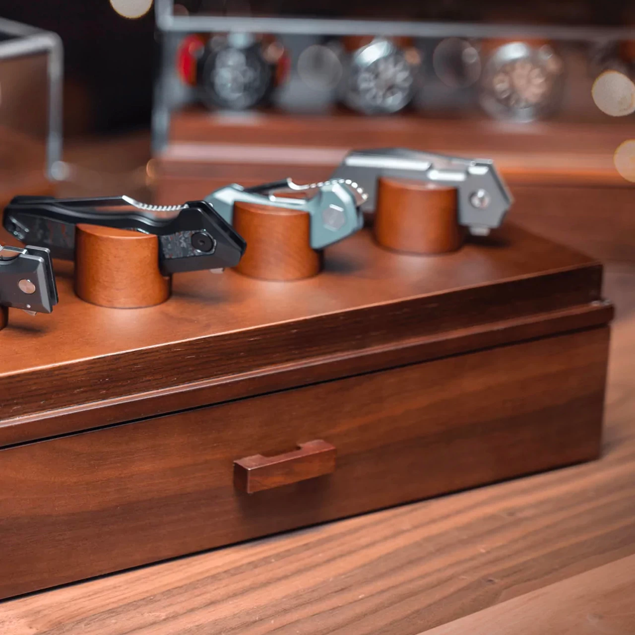 The Holme and Hadfield Knife Deck is designed to showcase your favourite knives, giving them the platform they deserve, while organizing the rest of your collection in the drawer.