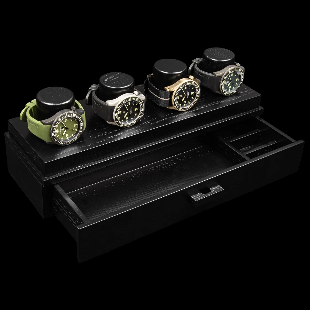 Holme and Hadfield have kept the functional features of a traditional watch organizer and valet tray, while combining it with a modern style case to display your favourite watches in a unique way.