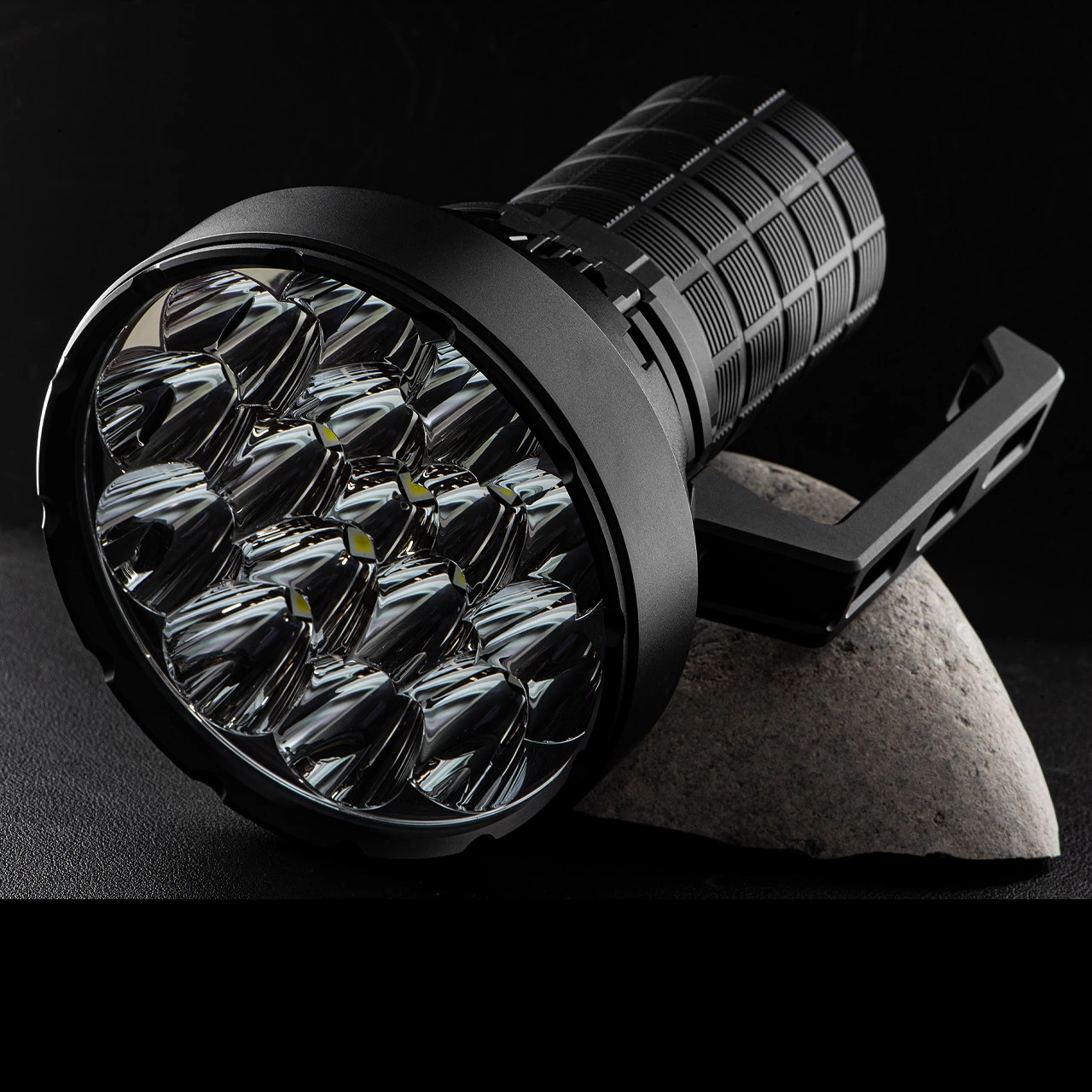 The Imalent SR16 is a can-sized powerful flashlight that uses 16 American CREE XHP50.3 HI LEDs to generate up to 55,000 lumens. Powered by its built-in Li-Ion battery pack consisting of four 21700-type cells. As a result, the beam produced by this torch can be seen from 1,715-meters away.
