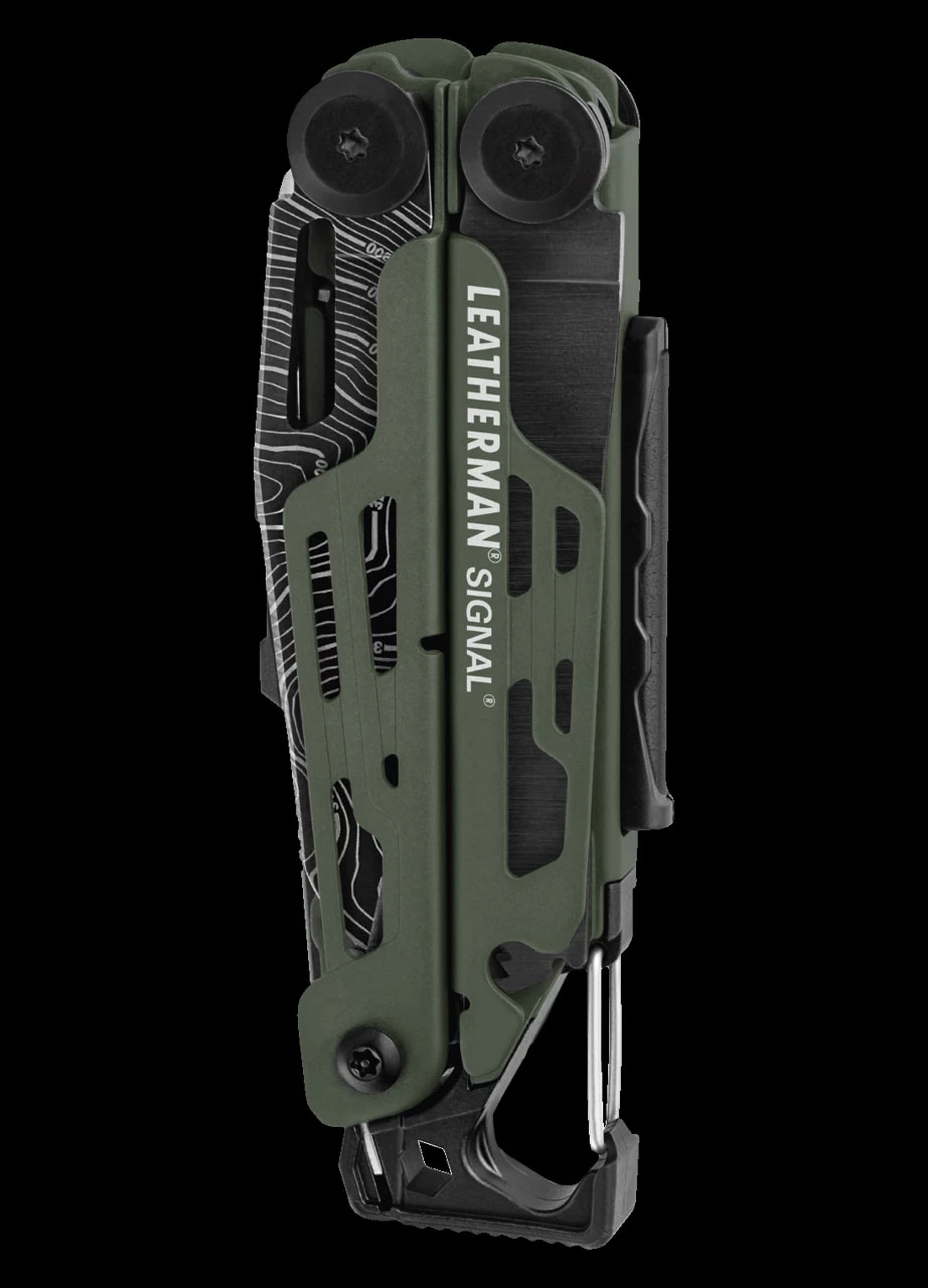 A perfect fit for any adventure, the Leatherman Signal combines 19 useful tools into a compact, 4.5 inch size. This multi-tool readies you for the unexpected with its fire-starting ferro rod, 420HC combo blade, and emergency whistle. Tighten gear with the customizable bit driver and anchor your tent stakes with the built-in hammer. A topographical map design is laser-etched into the knife blade. Gear up and go further with the Leatherman Topo Signal. Nylon sheath included.