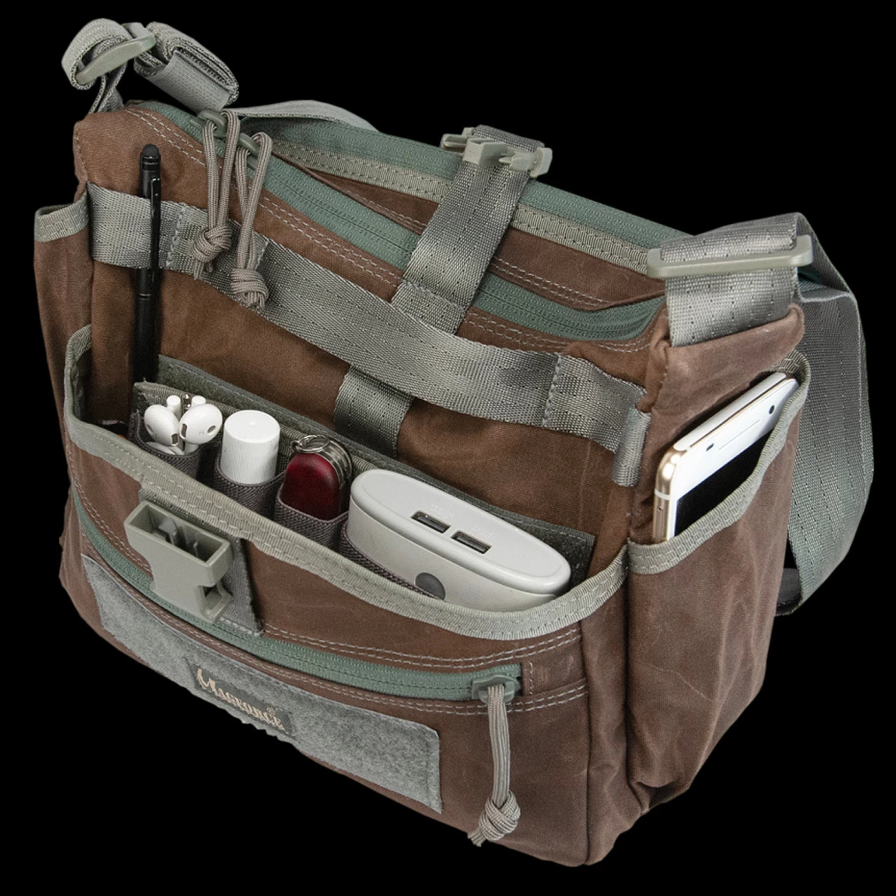 The Magforce Gemini Sling Bag is right at home in the hustle and bustle of the city and equally in the “get down and dirty” trails of the outdoors! This brown Waxed Cotton Canvas version is not only incredibly tough and water resistant but looks pretty damn cool too!