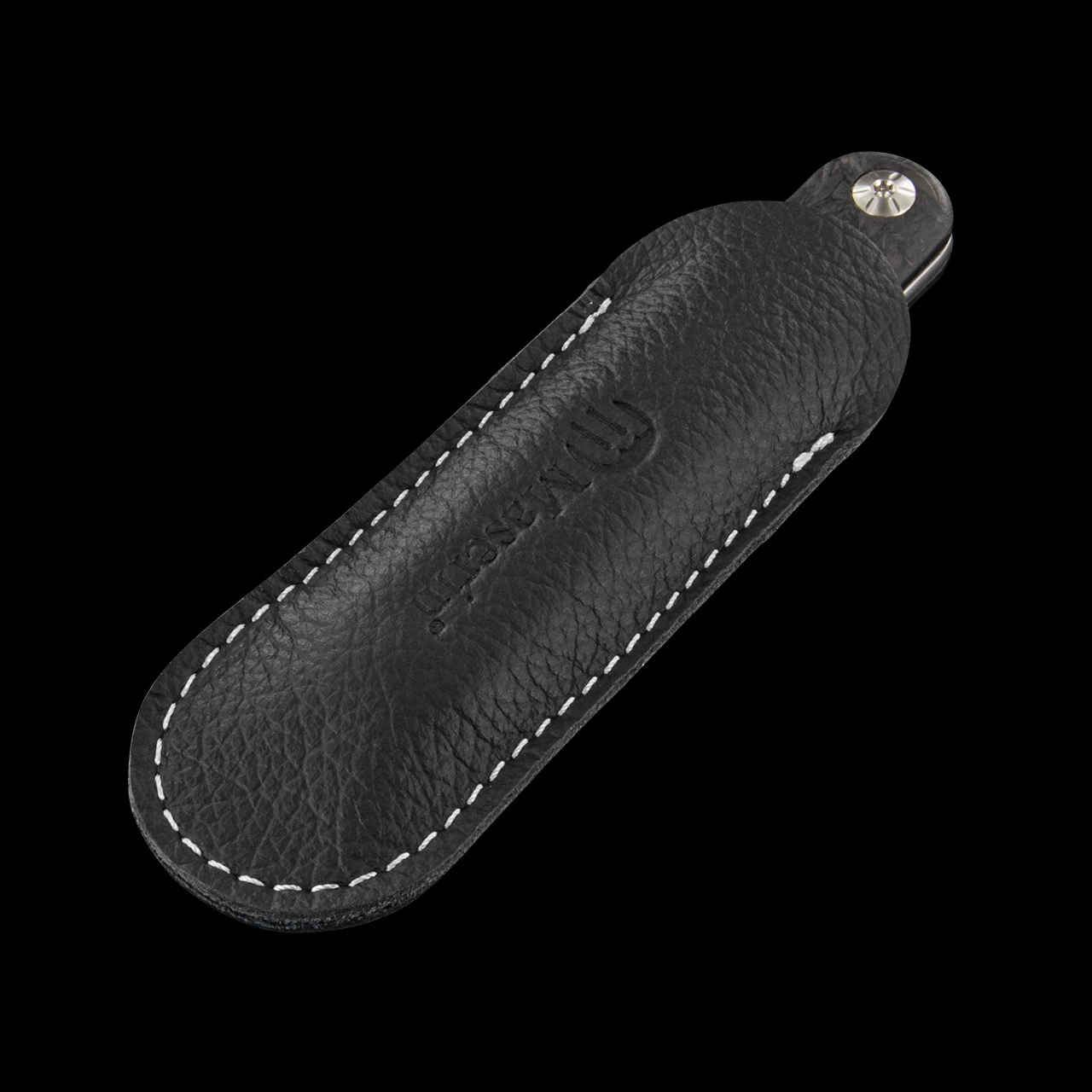 Set off with stainless steel pivots, this non-locking, UK friendly folding pocket knife is supplied in a leather slip case, and is one for the discerning collection.