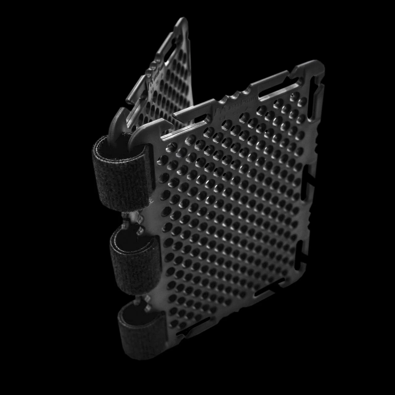 The TAC-Book utilises Tac-AMP’s joined together via one-wrap hook and loop, and includes 24 inches of shock cord. Users can mount items to both sides of a single Tac-AMP, or utilize two plates in a portfolio style booklet, easily mounting hard goods to the outside, and conveniently securing softer goods in between the two plates. The voids left in the plates are perfect size for Chicago Posts and Screws, but also serve as a grid for weaving shock-cord through as well.
