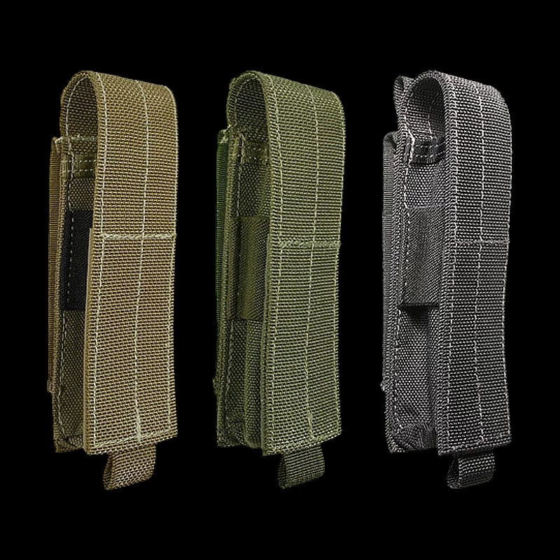 These versatile sheaths, equipped with lateral elastic retention, fit a multitude of flush or flared bezel torches from all major manufacturers. Rather than having the cost-cutting crimped bottoms like most other sheaths, MAXPEDITION Tube Sheaths have 1.1″ diameter throughout, all the way to the base, greatly augmenting carrying capacity, versatility and accessibility!! MAXPEDITION Tube Sheaths are slim, saving precious space on web gear or belt. A secure velcro lid provides full range of length adjustability while the grommeted bottom provides quick drainage and shine through functionality.
