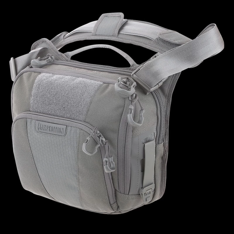 The Maxpedition LOCHSPYR (pronounced “LOCK-SPIRE”) is a crossbody shoulder bag optimized for carry. The rear CCW compartment is fully loop-lined and has an 16 inch U-shape zipper opening. The main compartment has a padded pocket sized to fit most tablets. There is an adjustable reinforced seatbelt webbing shoulder strap with quick release buckle and padded shoulder pad.