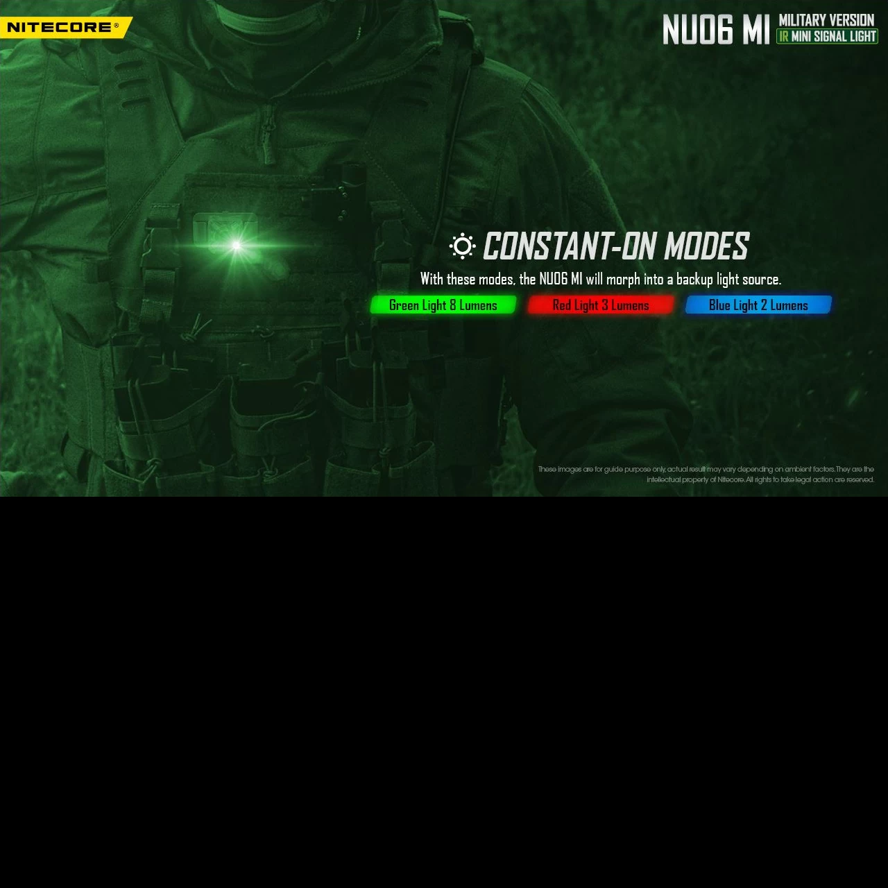 The Nitecore NU06 MI is a military mini signal light with 4 high performance LEDs and is powered by a built-in li-ion battery which is rechargeable via a USB-C port.