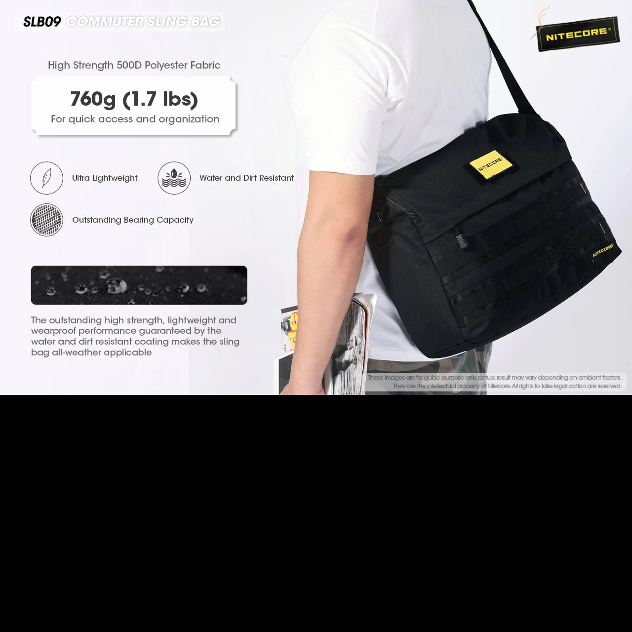 The Nitecore SLB09 sling pack is a lightweight 9L messenger bag designed especially for commuters. Made from black, high strength 500D polyester fabric, the pack is resistant to water and dirt and can be used no matter the weather.