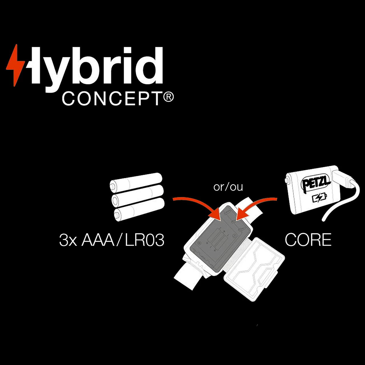 Its phosphorescent reflector makes it easy to find in the dark and red lighting keeps you from blinding those around you when you’re with a group. Actic Core is supplied with the Petzl Core rechargeable battery and also works with three standard AAA batteries, thanks to its hybrid concept design.
