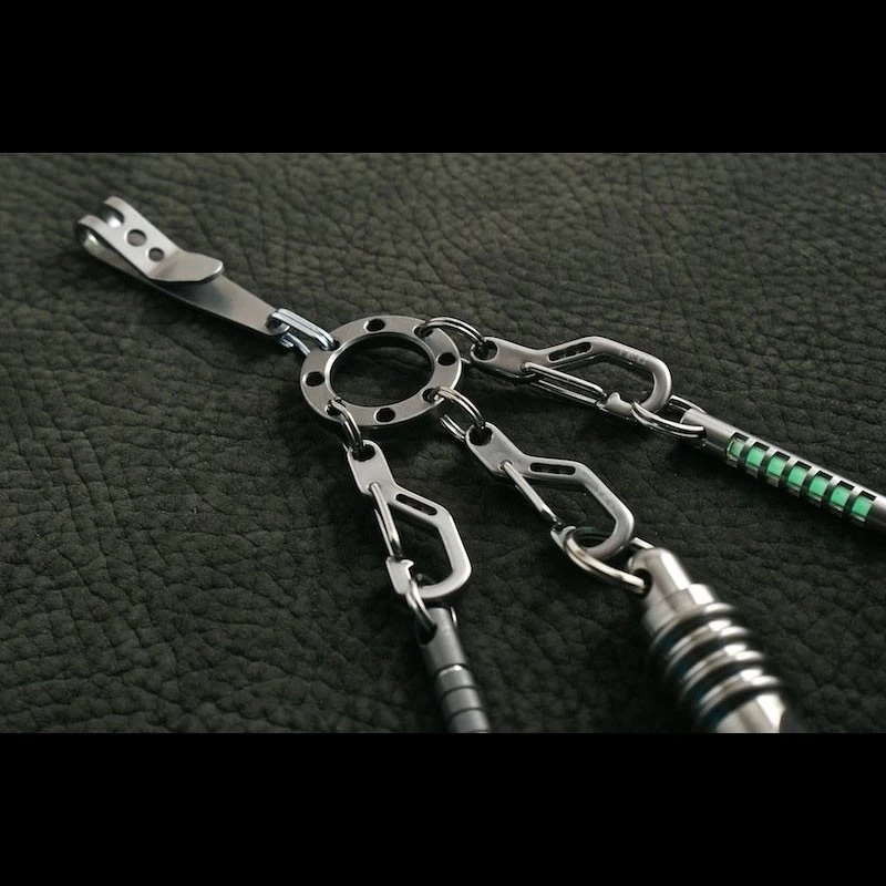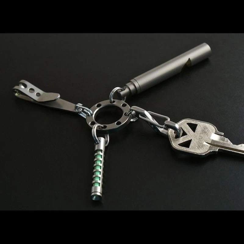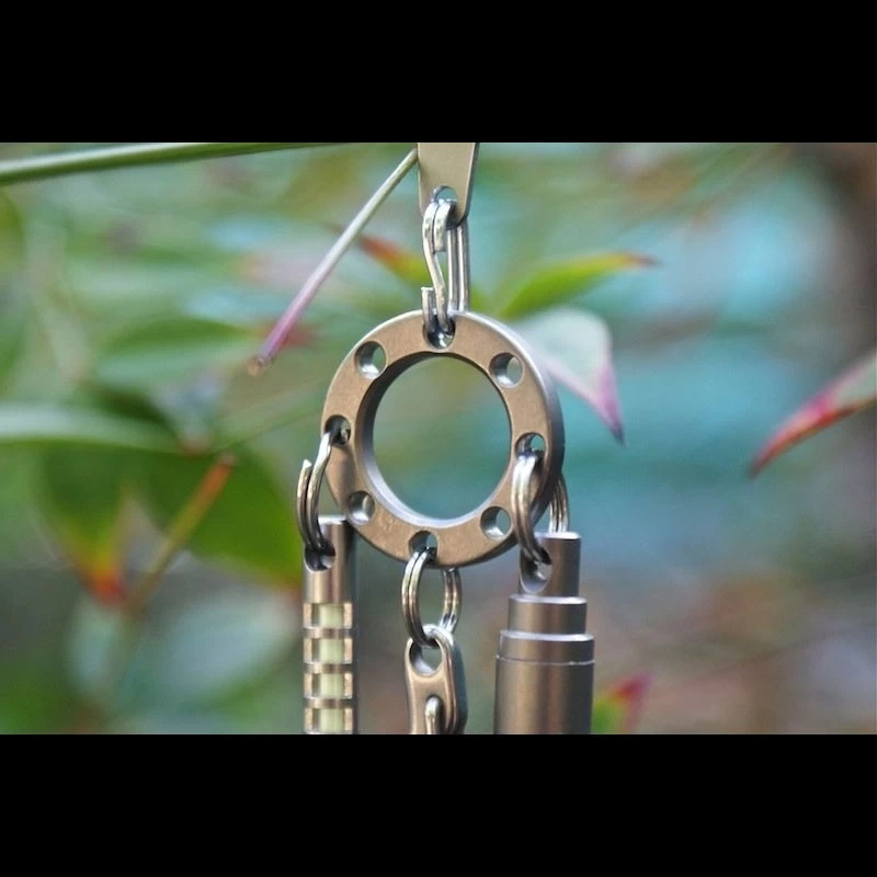 The Tec Accessories UFO (Universal Flex Organizer) is a ring of titanium with 8 equally spaced holes around the perimeter for attaching gear. When hanging from the TEC P-7 Suspension Clip, it helps to flatten out the items instead of hanging in one large bunch. It could be used with a P-7 clip as shown, or as a zipper pull with 2-3 items attached for convenience (Isotope and PicoPen for example). Use it to keep your house keys and work keys separate, or even as a key ring that keeps all items separated. It could also be used with paracord looped through the center. It’s shape makes it about as versatile as possible. However you want to organize your gear, the UFO can play a part in making it work for you!