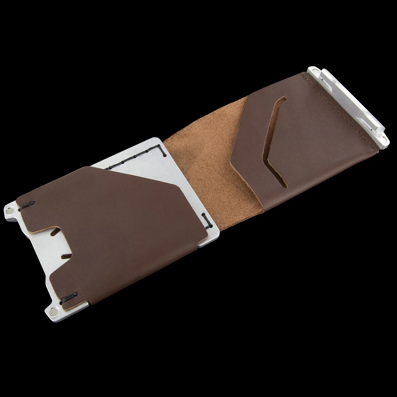 The Venture features a precision-machined aluminum frame, saddle stitched by hand to a single, cleverly-designed leather panel that minimizes thickness, reduces stitching, and creates a rugged exterior that will hold up to years of use. Its unique, built-in magnetic closure can be effortlessly opened for convenient card or cash selection and automatically re-engages for fiddle free security.