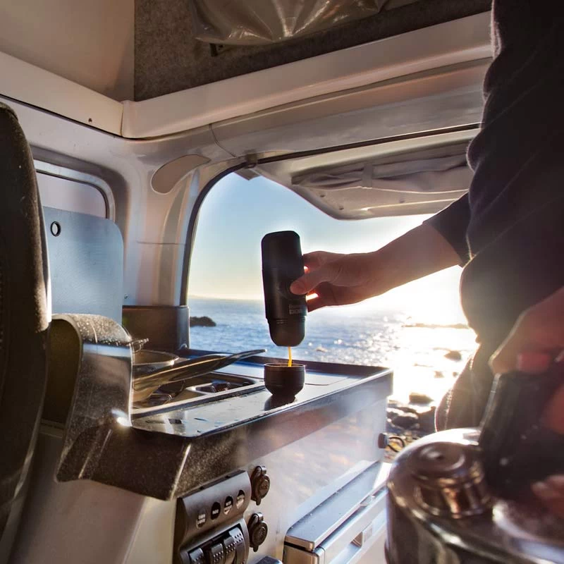 Minipresso GR is the perfect portable espresso machine. Compact, lightweight and versatile, you are free to use any coffee beans, which will give you more flexibility in trying new flavors. Grind at your convenience, you have more control over the preparation which will translate into being able of achieving perfect espresso shots that will please even the most perfectionist coffee lover.